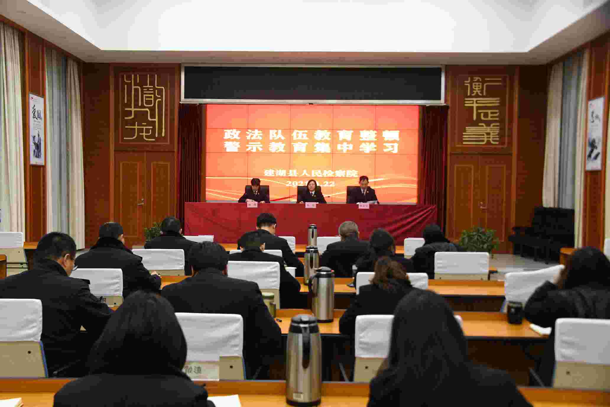 为深入推进政法队伍教育整顿,进一步增强检察干警廉洁自律意识,教育引导干警知敬畏、存戒惧、守底线、讲纪律、懂规矩,3月22日晚,建湖县人民检察院开展政法队伍教育整顿警示教育集中学习。