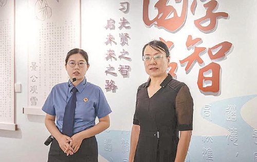 本报讯(记者匡雪 通讯员吴忠霖)近日,全国人大代表、山东省烟台市树德技工学校副校长王雁受邀来到烟台市福山区检察院青樱法治教育基地参观。“检察机关把福山地域历史文化融入青少年法治教育基地,以‘萌芽、生长、匡正、成熟’四个篇章象征樱桃成长的四个阶段,寓意很好,每一个篇章都蕴含着深刻的法治教育意义。”听完检察干警的讲解,王雁对该基地的整体布局表示肯定。