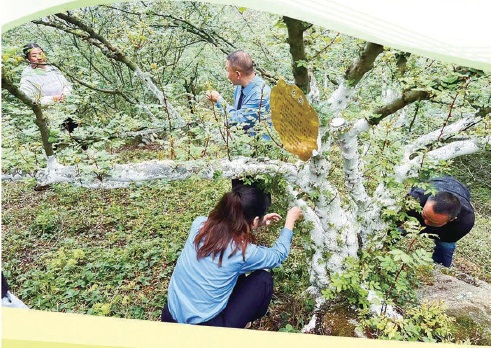 2023年6月,四川省汉源县检察院检察官与人大代表共同查看两棵花椒古树保护情况。